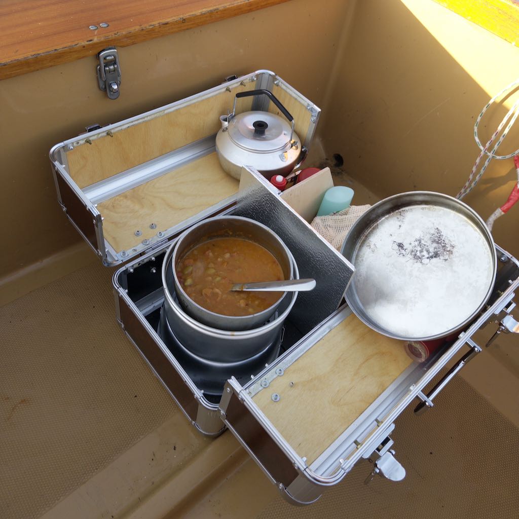 Of course you could just put that jet boil, gas stove or trangia into your backpack. But there are several advantages by packing all the galley—that's a kitchen on a boat—related stuff into one nice little box.